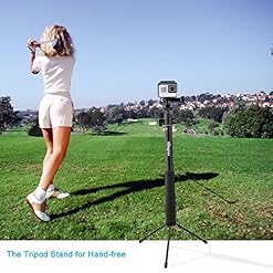 4.A tripod stand works with any monopod with 1/4″ screw port on the bottom. You are hands-free for shooting. You’ll take photos or make videos for your kids sport meeting, camping, party without a needs to hold the pole all of the time