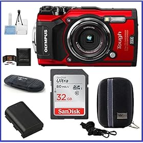 Olympus Stylus TOUGH TG-5 Digital Camera (Red) Bundle includes; 32GB SDHC Class 10 Memory Card, SD Card Reader, Spare Battery, Case and more…