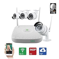 FEISIER 4CH HD 960P HDMI NVR Kit Outdoor Surveillance System,4x960P Weatherproof Security Cameras System Wireless WiFi Smart Indoor Home Video with 1TB Hard Drive