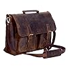 KomalC 15 Inch Retro Buffalo Hunter Leather Laptop Messenger Bag Office Briefcase College Bag Fits Upto 15.6 Inch Laptop (Distressed Tan) (Distressed Tan)