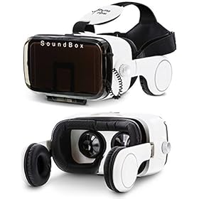 Okra Rhythm SoundBox VR Virtual Reality Glasses Headset – 3D 360 Panoramic with Built-in Stereo Headphones (Hi-Fi Sound) for iPhone or Android