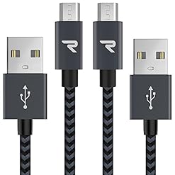 Rampow Micro USB Cables [2-Pack 3.3ft] Braided Samsung USB Cables/Android Cables – Micro USB Charging Cables for Galaxy S7/S6/, Sony, Motorola and More – Space Gray/Red & Black