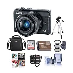 Canon EOS M100 Mirrorless Camera with EF-M 15-45mm f/3.5-6.3 is STM Lens, Black – Bundle with 32GB SDHC Card, Camera Case, 49mm Filter kit, Spare Battery. Tripod, Software Package, and More