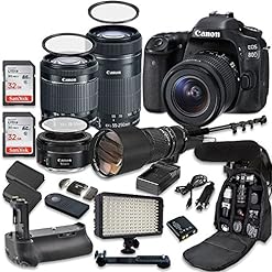 Canon EOS Rebel T7i DSLR Camera Bundle with Canon EF-S 18-55mm f/4-5.6 IS STM Lens + Canon EF 75-300mm f/4-5.6 III Lens + 500mm f/8 Preset Lens + Accessory Kit