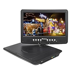 NAVISKAUTO 10.1 Inch HD Portable DVD/CD Player with SD Card Slot USB Port and 5 Hour Built-In Rechargeable Battery, 270° Swivel Screen, 3m AC/DC Adapter and Car Headrest Mount Case-Black