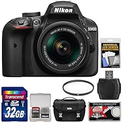 Nikon D3400 Digital SLR Camera & 18-55mm VR DX AF-P Zoom Lens (Black) with 32GB Card + Case + Filter Kit (Certified Refurbished)