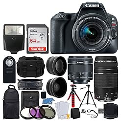 Canon EOS Rebel SL2 DSLR Camera + EF-S 18-55mm IS STM + EF 75-300mm III + 64GB Memory Card + Wide Angle & Telephoto + RS-60 Remote Switch + Slave Flash + Quality Tripod + Case & Backpack – Full Bundle