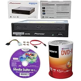 Pioneer 16x BDR-211UBK Internal Ultra HD Blu-ray BDXL Burner, Cyberlink Software and Cable Accessories Bundle with 50pk CD-R Sony 700MB 48X Recordable Media
