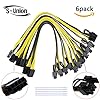 S-Union [8PCS] 16AWG 6Pin PCI-E to 8 (6+2) pin Cable 27.5 Inch(70CM) Length PCI 6Pin Male to Male Cable for GPU/PSU Breakout Board, GPU Ethereum ETH Mining Power Supply (with 5 Nylon Cable Ties)