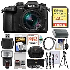 Panasonic Lumix DC-GH5 Wi-Fi 4K Digital Camera & 12-60mm f/2.8-4.0 Lens with 128GB Card + Case + Flash + Battery + Tripod + 3 Filters Kit