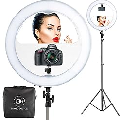 18″ LED Video Ring Light with Mirror, 6ft Stand Tripod, Adjustable Heavy Duty Mount for DSLR, iPhone & Android Smartphones – Professional Studio Photography Dimmable Lighting Kit for Makeup & YouTube