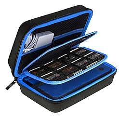 Brendo Carrying Case for New Nintendo 3DS XL, 2DS XL, 3DS Case, Fits Wall Charger, 24 Game Cartridge Holders and Large Stylus – BLACK/BLUE