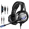 ONIKUMA Gaming Headset for PS4, PS4 Gaming Headset with 7.1 Surround Sound, Xbox One Headset with Noise Canceling Mic LED Light, Over-Ear Headphones for PS4, Xbox One, PC, Mac, Laptop, Nintendo Switch