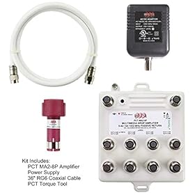PCT PCT-MA2-8PN 8-Port Bi-Directional Cable TV, OTA, Satellite HDTV Amplifier Splitter Signal Booster with Passive Return and Coax Cable