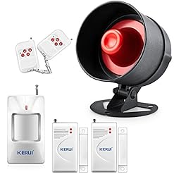 KERUI Standalone Home Office & Shop Security Alarm System Kit, Wireless Loud Indoor/Outdoor Weatherproof Siren Horn with Remote Control and Door Contact Sensor,Motion Sensor,Up to 110db