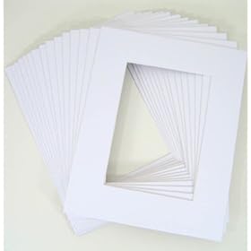 Pack of 25 11×14 WHITE Picture Mats Mattes with White Core Bevel Cut for 8×10 Photo + Backing + Bags