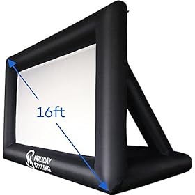 Inflatable Outdoor Projector Screen – Movie TV or Music Fun – Blow Up Screens Made with Strong 600DD Fabric – 16Ft Diagonal Full Package Inc Blower, Ropes, Pegs, Free Popcorn Bags by Holiday Styling