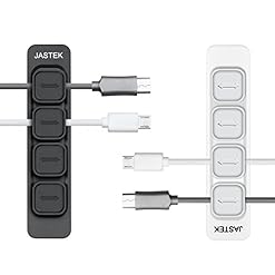 JASTEK 2Pack Magnetic Cable Clips Desktop Tiny Cord Management Organization with 4 Button Multipurpose Cables Holder Organizer for Phone Charging Cable Mouse Wire Earphone Cord – Black & white