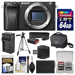 Sony Alpha A6300 4K Wi-Fi Digital Camera Body (Black) with 64GB Card + Case + Battery & Charger + Tripod + Strap + Kit