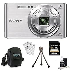 Sony DSCW830 DSCW830 W830 DSC-W830 DSC-W830 DSC-W830 20.1 Digital Camera with 2.7-Inch LCD (Silver) Bundle with 16GB Card, Deluxe Carrying Case, Mini Tripod, Lens Cleaning Kit + Much More