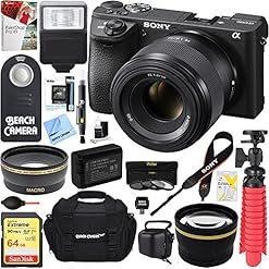 Sony ILCE-6500 a6500 4K Mirrorless Camera Body + 50mm E-Mount Lens + 64GB Memory Card + Large Gadget Camera Bag + PaintShop Pro + Slave Flash + Remote + Microfiber Cloth + Lens Cleaning Pen + More