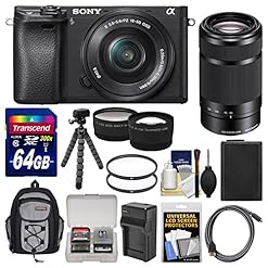 Sony Alpha A6300 4K Wi-Fi Digital Camera & 16-50mm & 55-210mm Lenses (Black) with 64GB Card + Case + Battery & Charger + Flex Tripod + Filters + Kit