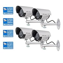 WALI Bullet Dummy Fake Surveillance Security CCTV Dome Camera Indoor Outdoor with one LED Light Warning Security Alert Sticker Decals (TC-S4), 4 Packs, Silver