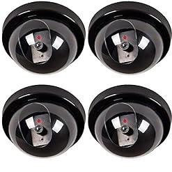WALI Dummy Fake Security CCTV Dome Camera with Flashing Red LED Light with Warning Security Alert Sticker Decals (SD-4), 4 Packs, Black