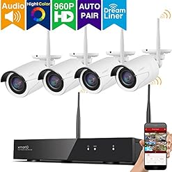 Wireless Security Camera System xmartO Auto-Pair 4 Channel 1080p HD Surveillance NVR with 4X 960p HD WiFi IP Cameras, Dream Liner WiFi Relay, NVR with Built-in Router, Indoor Outdoor, No HDD