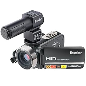 Camcorder, Besteker FHD 1080p Camcorders with External Microphone and Remote Control Digital Camera Camcorder