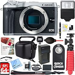 Canon EOS M6 24.2MP Mirrorless Digital Camera – Silver (Body Only) + 64GB Class 10 UHS-1 SDXC Memory Card + Accessory Bundle