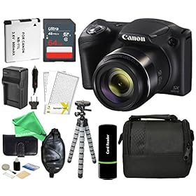 Canon PowerShot SX420 IS Digital Camera (Black), 20MP, 42x Optical Zoom, 720p HD Video & Built-In Wi-Fi + 64GB Card + Reader + Grip + Spare Battery/Charger + Tripod + DigitalAndMore Accessory Bundle