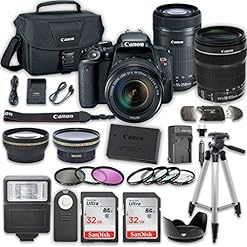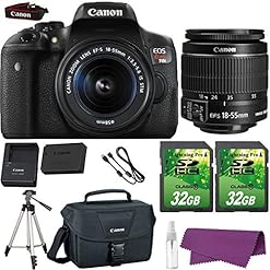 Canon EOS Rebel T7i DSLR Camera Bundle with Canon EF-S 18-135mm f/3.5-5.6 IS STM Lens + Canon EF-S 55-250mm f/4-5.6 IS STM Lens + 2pc SanDisk 32GB Memory Cards + Accessory Kit
