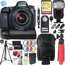 Canon EOS 6D Mark II 26.2MP Full-Frame Digital SLR Camera with 24-105mm is II USM Lens BG-E21 Battery Grip Accessory Bundle