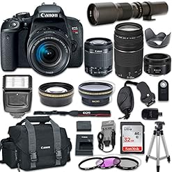 Canon EOS Rebel T7i DSLR Camera with Canon EF-S 18-55mm f/4-5.6 is STM Lens + Canon EF 75-300mm f/4-5.6 III Lens + Canon EF 50mm f/1.8 STM Lens + 500mm f/8.0 Telephoto Lens + New Accessories Bundle