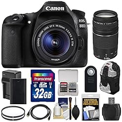 Canon EOS 80D Wi-Fi Digital SLR Camera & EF-S 18-55mm IS STM with 75-300mm III Lens + 32GB Card + Battery & Charger + Backpack + Tripod + Kit