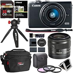 Canon EOS M100 Mirrorless Camera, 15-45mm Lens – Wi-Fi Bluetooth and NFC Enabled (Black), Ritz Gear Extreme SD 32GB U3, Filter Kit, Camera Bag, Ritz Gear Tabletop Tripod Red and Accessory Bundle