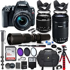 Canon EOS Rebel SL2 DSLR Camera with 18-55mm STM Lens Bundle + Canon EF-S 55-250mm f/4-5.6 is STM Lens and 500mm Preset Lens + 32GB Memory + Filters + Monopod + Spider Tripod + Professional Bundle