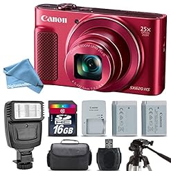 Canon PowerShot SX620 HS Digital Camera (Red) + Flash + Backup Battery + 16GB Class 10 Memory Card + Tripod + Digital Camera Case + Card Reader + DigitalAndMore Extreme Cleaning Kit