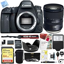 Canon EOS 6D Mark II 26.2MP Full-Frame DSLR Camera with Tamron SP 24-70mm f/2.8 Di VC USD G2 Lens Mount Plus 64GB Accessories Bundle