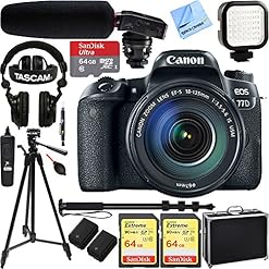 Canon EOS 77D 24.2 MP CMOS (APS-C) Digital SLR Camera with EF-S 18-135mm IS USM Lens w/Tascam DSLR Audio Recorder and Shotgun Microphone + 128GB & 64GB Pro Video Bundle