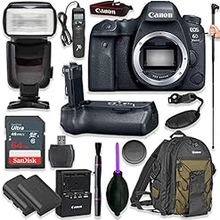 Canon EOS 6D Mark II Digital SLR Camera Body – Wi-Fi Enabled with Pro Camera Battery Grip, Professional TTL Flash, Deluxe Backpack 200EG, Universal Timer Remote Control, Spare LP-E6 Battery (16 items)