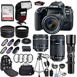 Canon EOS 77D DSLR Camera + Canon 18-55mm IS STM Lens + Canon EF-S 55-250mm Lens & 500mm f/8.0 Lens + 0.43 WideAngle Lens + 2.2 Telephoto Lens + Macro Close-ups + Accessories (Holiday Special Kit)