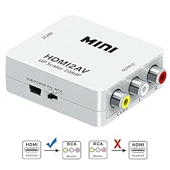 RCA to HDMI, GANA 1080P Mini RCA Composite CVBS AV to HDMI Video Audio Converter Adapter Supporting PAL/NTSC with USB Charge Cable for PC Laptop Xbox PS4 PS3 TV STB VHS VCR Camera DVD