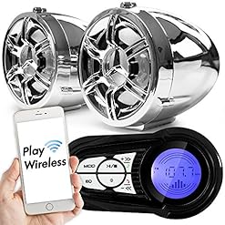 GoldenHawk 3″ Waterproof Bluetooth Wireless Motorcycle Stereo Speakers 7/8 – 1 in. Handlebar Mount MP3 Music Player Sound Audio System Scooter Golf Cart ATV UTV w/ USB, microSD, 12V Applications