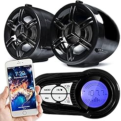 GoldenHawk All-In-One 4″ Waterproof Bluetooth Motorcycle Stereo Speakers 7/8-1.25 in. Handlebar Mount MP3 Music Player Sound Audio System Scooter ATV UTV w/USB, Remote, Radio, Amplifier