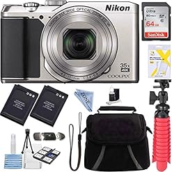 Nikon A900 20MP Longest Slim Zoom COOLPIX WiFi Digital Camera with 4K UHD Video 35x Telephoto NIKKOR Zoom Lens + 64GB Dual Battery Accessory Bundle (Silver) + Linen zone cloth