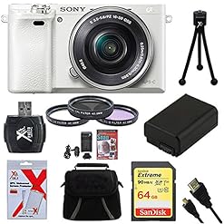 Sony Alpha a5100 Mirrorless Digital Camera with 16-50mm Lens (White) and 32GB SD Card Bundle