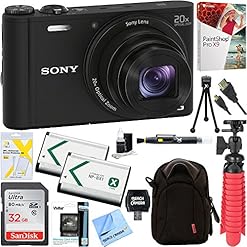 Sony Cyber-shot WX350 Compact Digital Camera with 20x Optical Zoom (Black) + 32GB SDHC Memory Dual Battery Kit + Accessory Bundle