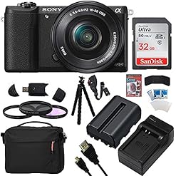 Sony a5100 Interchangeable Lens Mirrorless Camera with 16-50mm Lens (Black) 32GB Accessory Bundle (ILCE5100L/B)